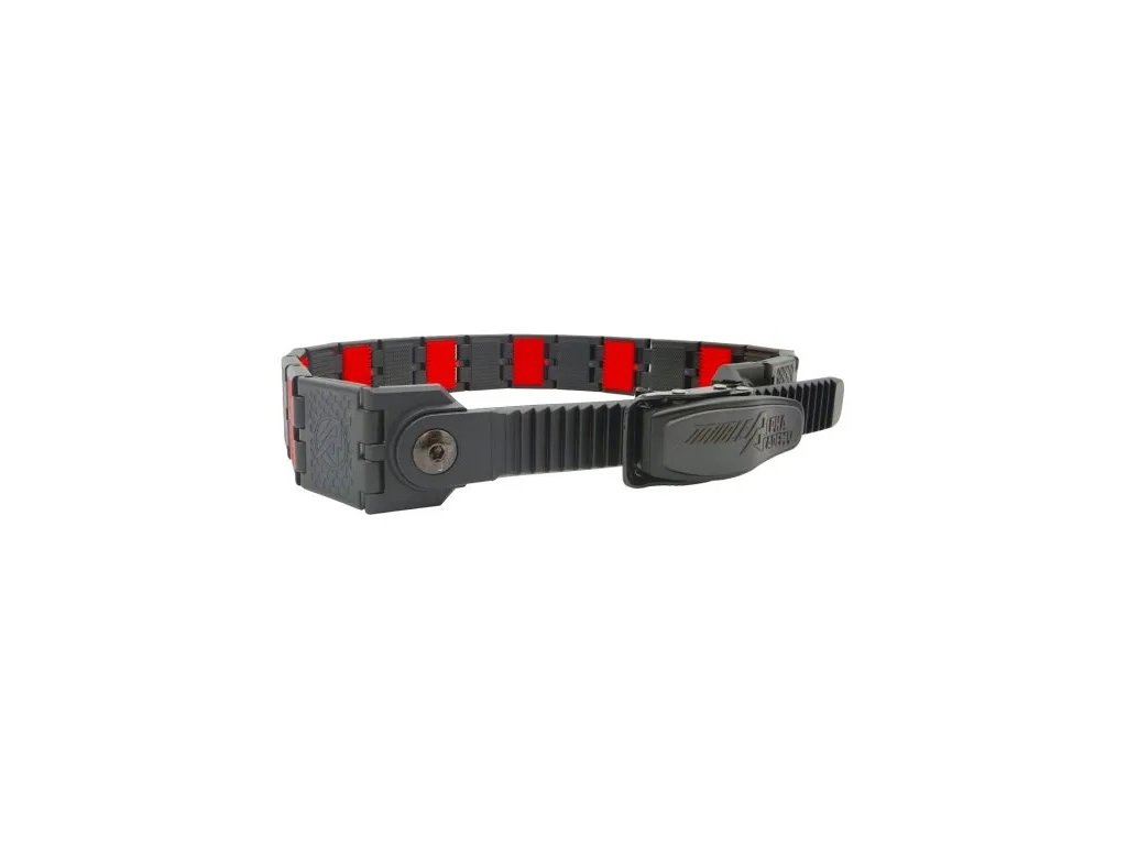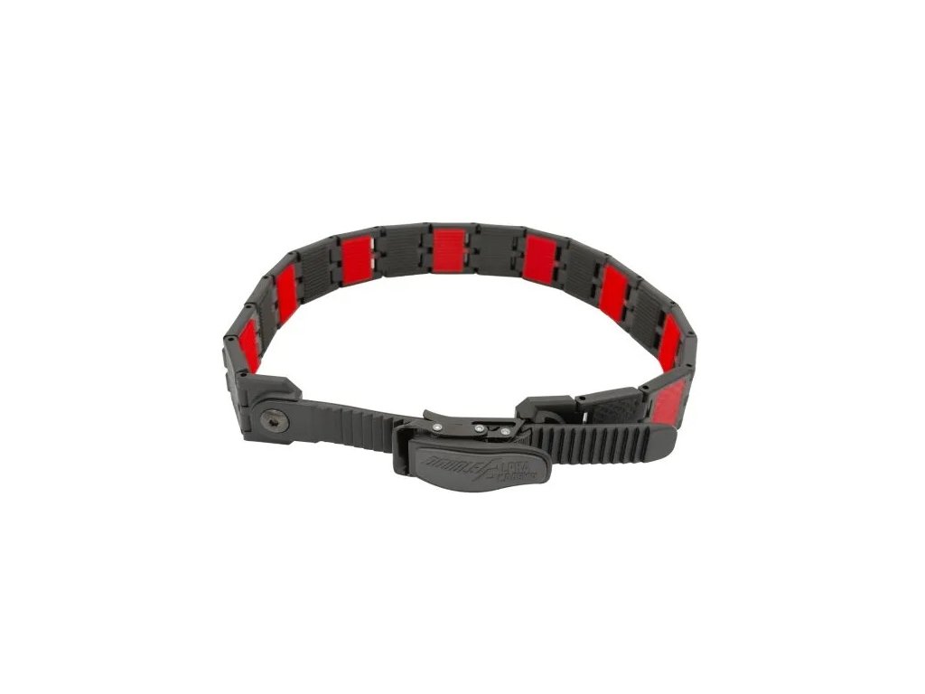Velcro háčky na jednotlivých článcích nejsou lepené jako u běžných opasků. Jsou vytvořeny technologií over-mould injection, tedy vstřikováním přímo do struktury článku během výroby. Díky tomu jsou trvalou součástí každého článku a poskytují maximální pevnost i odolnost proti opotřebení.