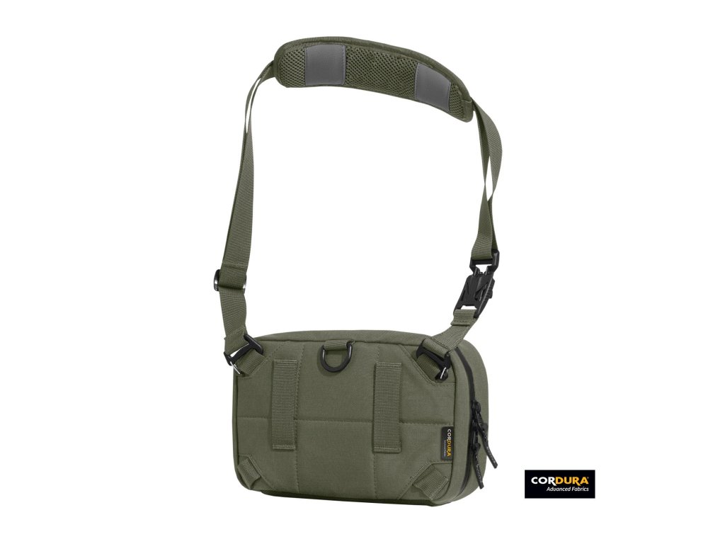 Brašna je vyrobena z odolného 500D Nylon Cordura® a ve spodní části zesílena balistickým nylonem, což zajišťuje vysokou odolnost i v náročných podmínkách. Konstrukce odolná vůči počasí v kombinaci s voděodolnými zipy YKK®chrání obsah před deštěm a vlhkostí. Hlavní popruh ze scuba nylonového popruhu s EVA pěnovým polstrováním a protiskluzovou plochou poskytuje komfort a stabilitu při nošení, zatímco magnetické přezky Fidlock® umožňují rychlé a intuitivní zapínání. Nastavitelný a odnímatelný popruh nabízí různé způsoby nošení podle aktuálních potřeb. Dvě poutka z popruhoviny navíc umožňují upevnění na opasek, což ještě zvyšuje variabilitu použití.
