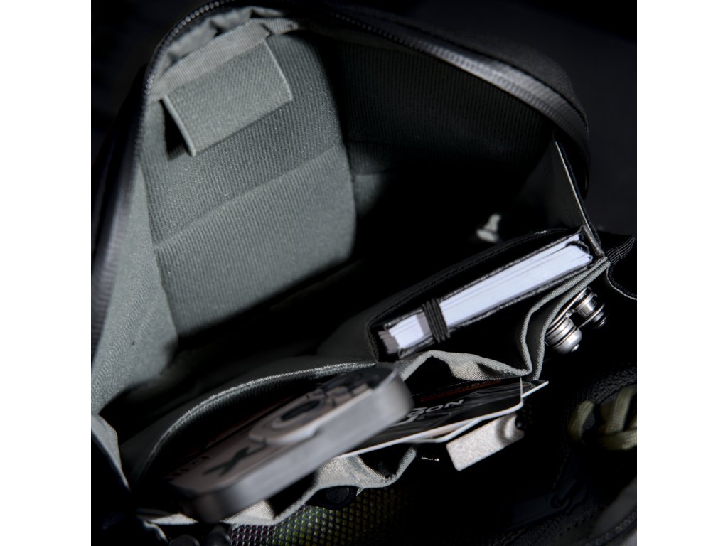 Přední skrytá kapsa na zip: diskrétní, nízkoprofilový prostor pro dokumenty a drobné nezbytnosti, doplněný o integrovaný MOD Key Tether