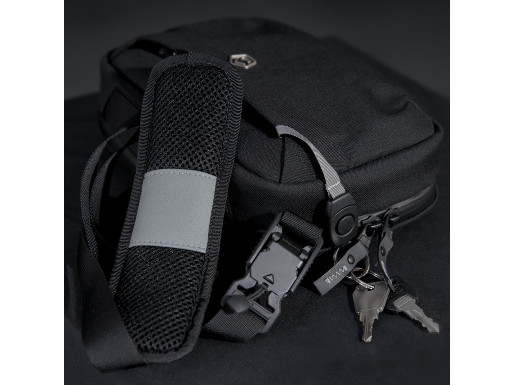 Variabilní nošení: odnímatelný, polstrovaný ramenní popruh s magnetickou přezkou Fidlock® + 2 poutka pro uchycení na opasek